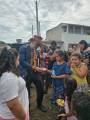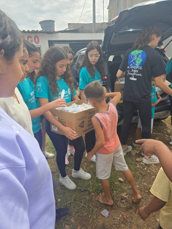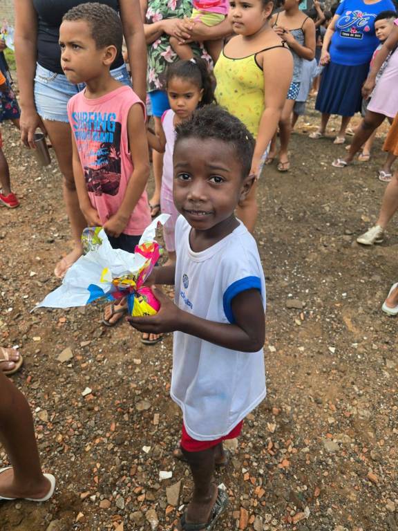 Na sequência os mesmos jovens fizeram a entrega de caixas de Bis para 240 crianças da Comunidade Frederico.