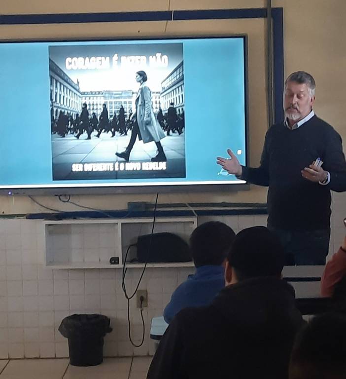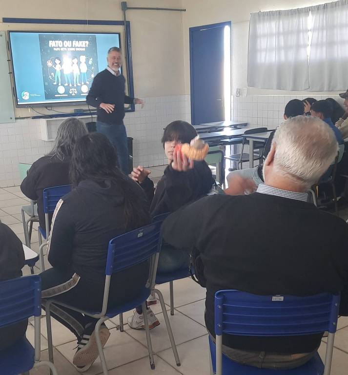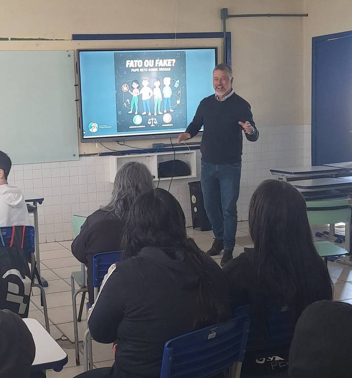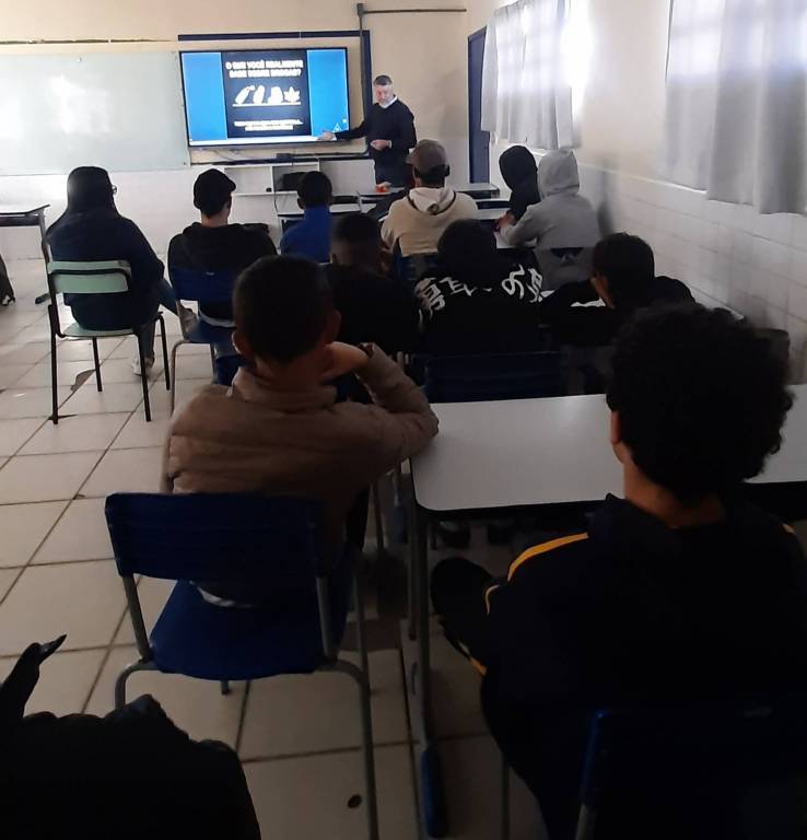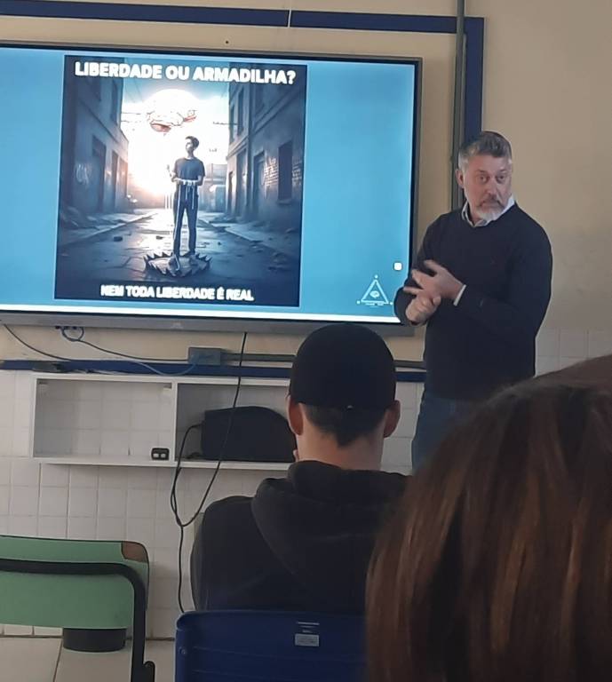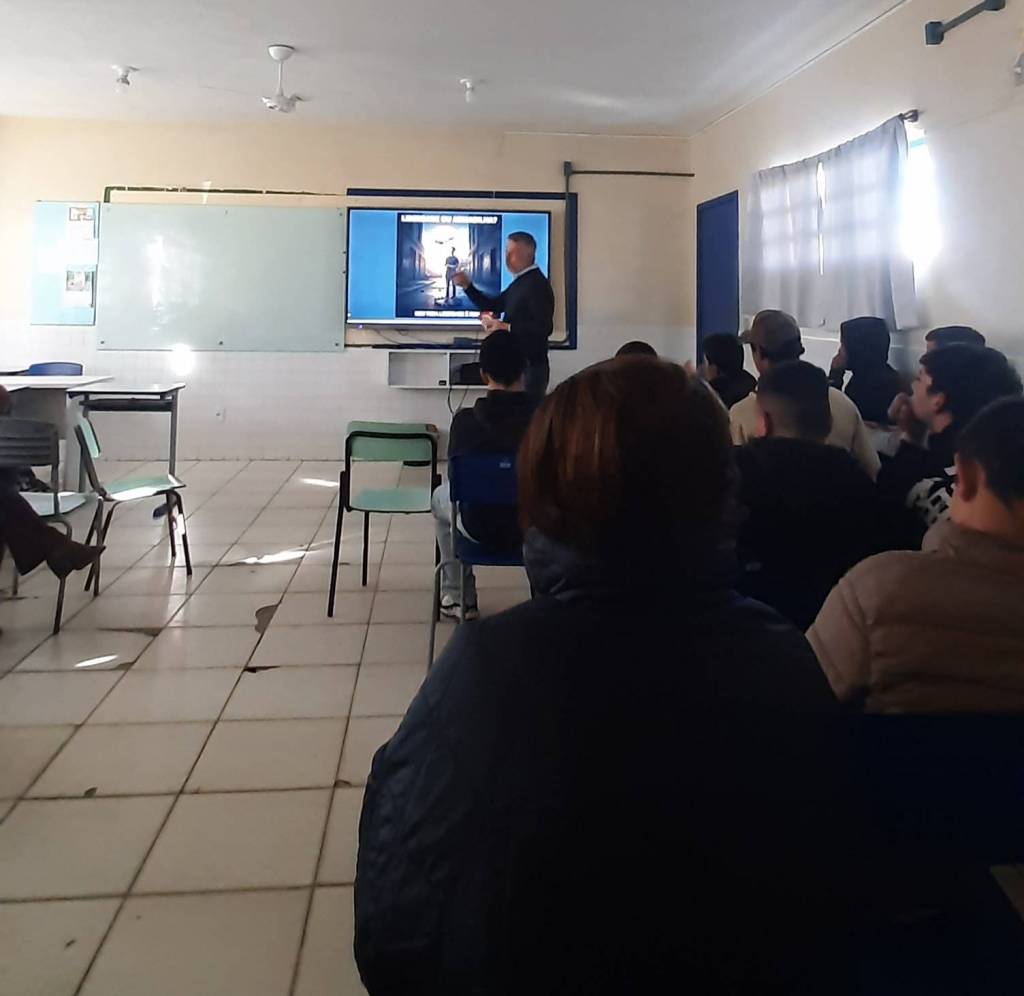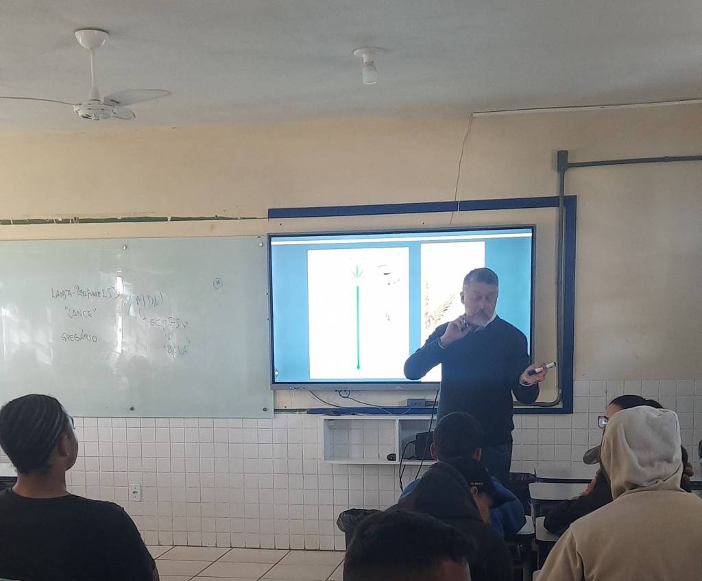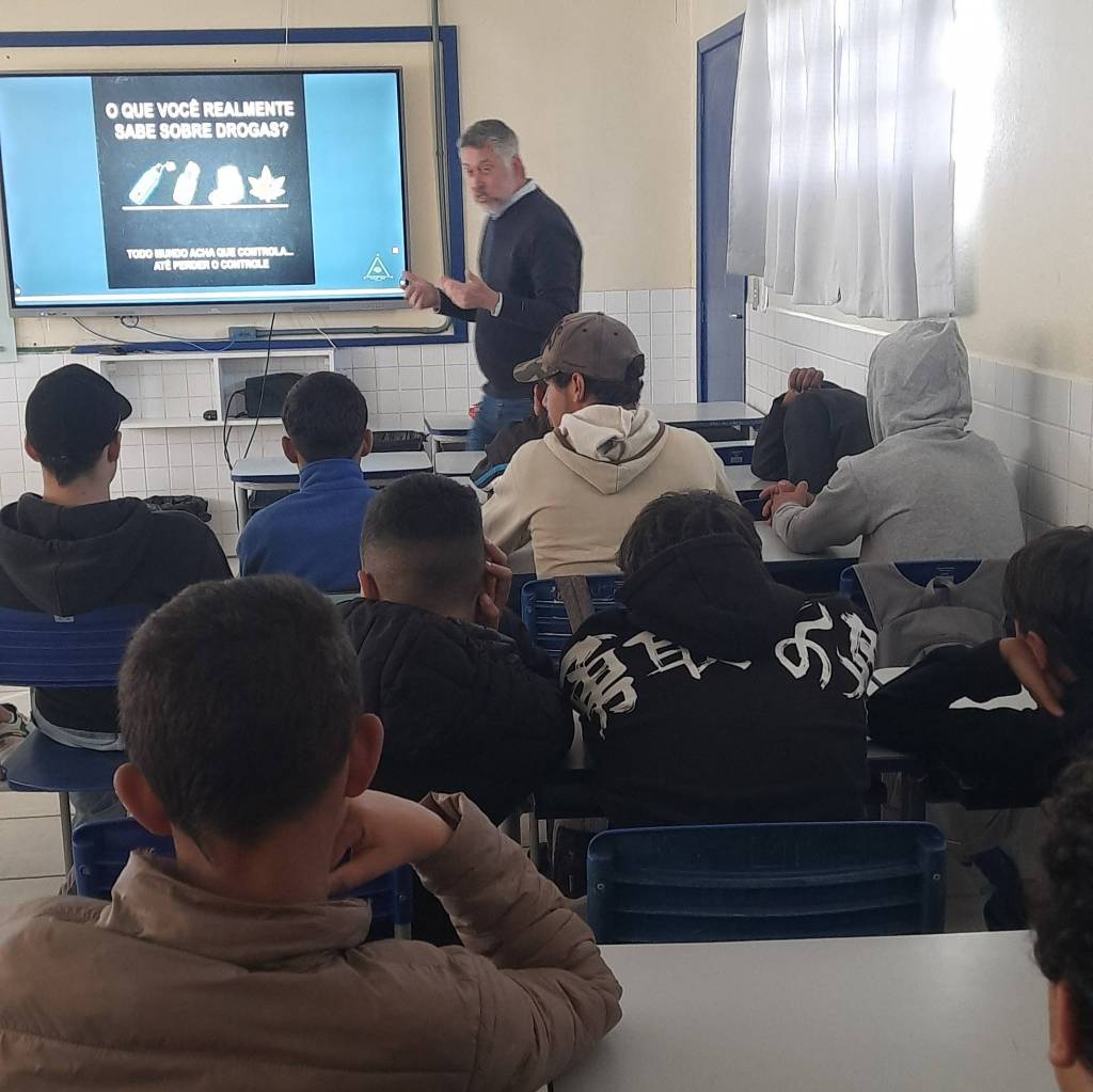 Na manhã de 08 de outubro, os estudantes participaram da palestra sobre os efeitos maléficos do uso de drogas, proferida pelo psicológico e ex policial, Giovani Piano.