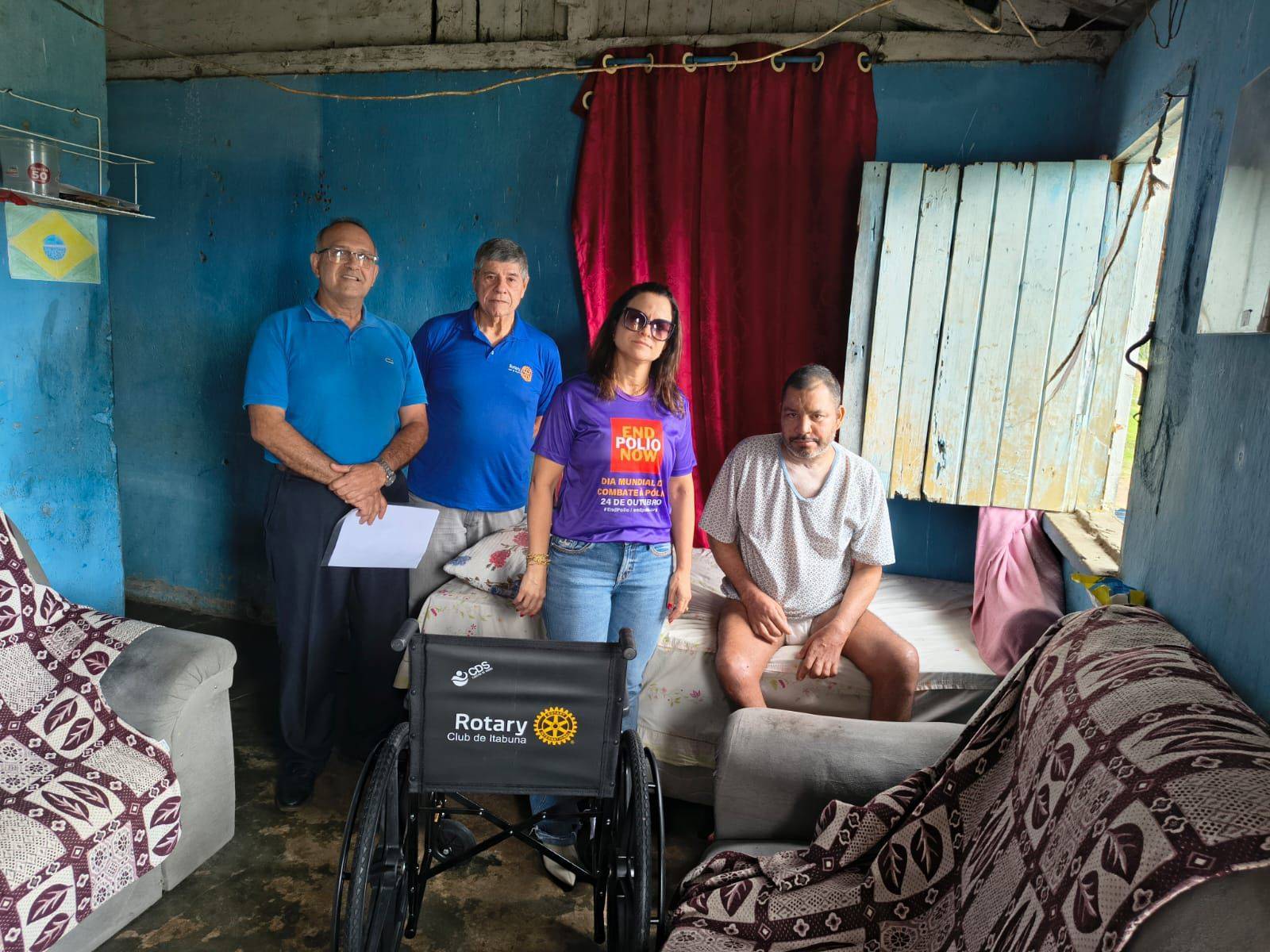 Na manhã de sexta-feira, 17 de outubro, o Banco de Cadeira de Rodas do Rotary Club de Itabuna realizou mais uma entrega solidária. Alessandro Santos da Silva, de 51 anos, morador do bairro de Ferradas, na localidade Roça do Povo, recebeu uma cadeira de rodas porque infelizmente sofre de tetraplegia. A entrega foi realizada pela coordenadora do Banco de Cadeira de Rodas, Adriana Mozer, com o apoio dos companheiros Gilberto Santana e José Roberto Simões.