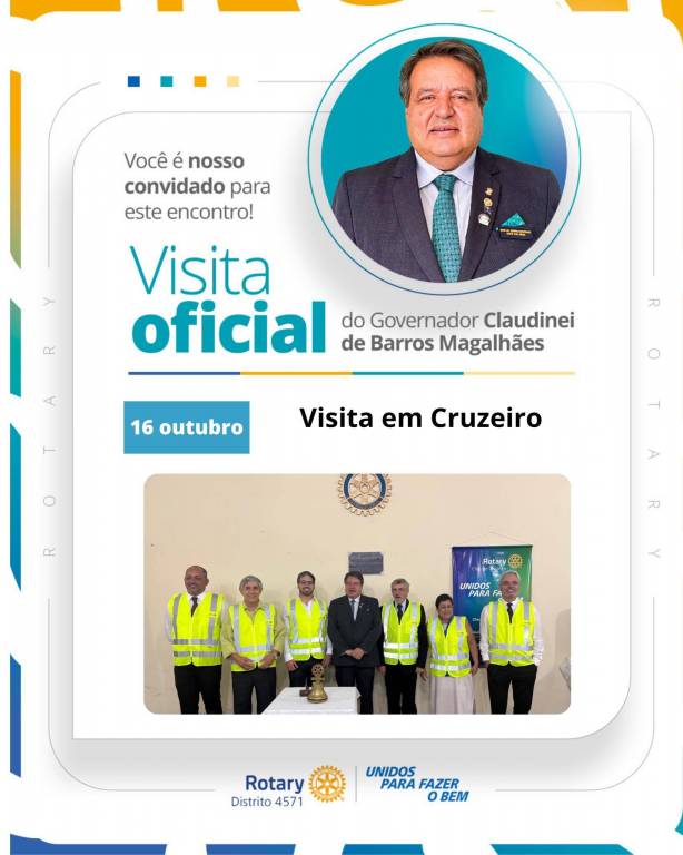 No dia 16 de outubro, o Governador Claudinei de Barros Magalhães realizou sua visita oficial ao Rotary Club de Cruzeiro, onde foi recebido pelos companheiros com grande entusiasmo e espírito rotário. 💙