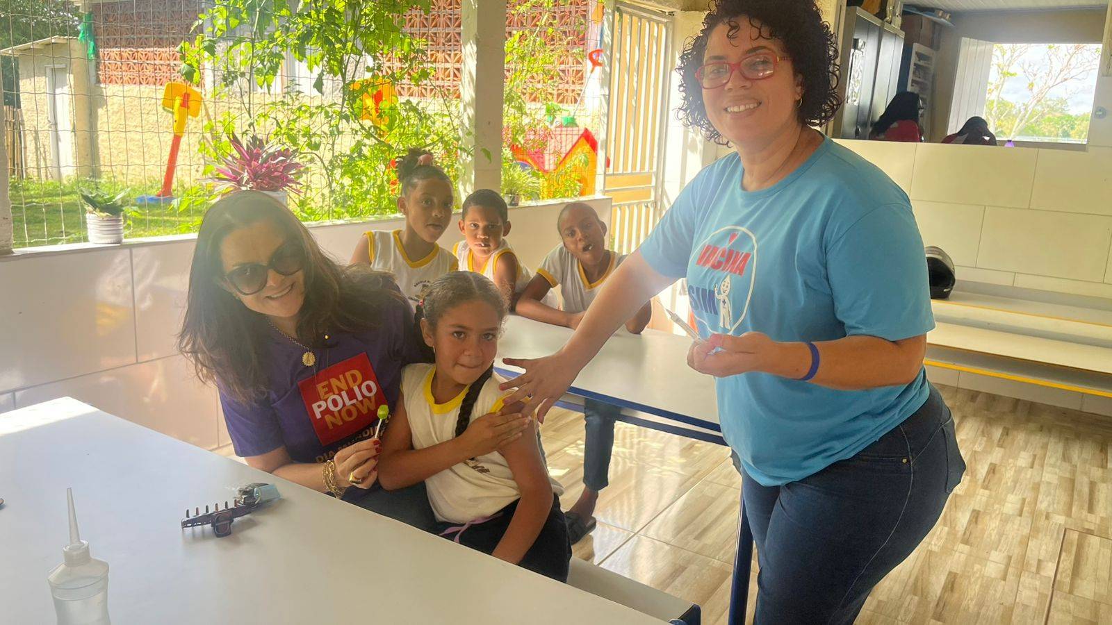 A ação ocorreu na escola local e contou com a presença da enfermeira Adriana Mozer, representante do Rotary Club de Itabuna e coordenadora do projeto de vacinação no clube. Atuou ao seu lado a enfermeira Carol Bacelar, da Rede Frio, garantindo a aplicação das vacinas e o suporte necessário. A campanha do Rotary reforça mais uma vez que a vacinação salva vidas e que Unidos para fazer o bem, podemos proteger a população e erradicar doenças.
