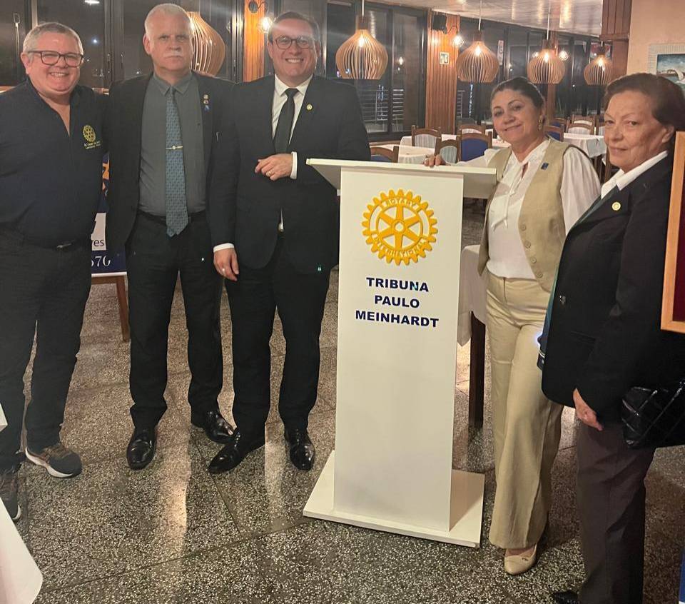 Presidente Ana Souza, Vice-presidente Leonardo Meira e a associada Leni Cassol do RC Capão da Canoa, participaram, na noite de segunda-feira, da reunião festiva do RC Torres, que marcou a visita oficial do Governador do Distrito 4670, Silvio Ourique.