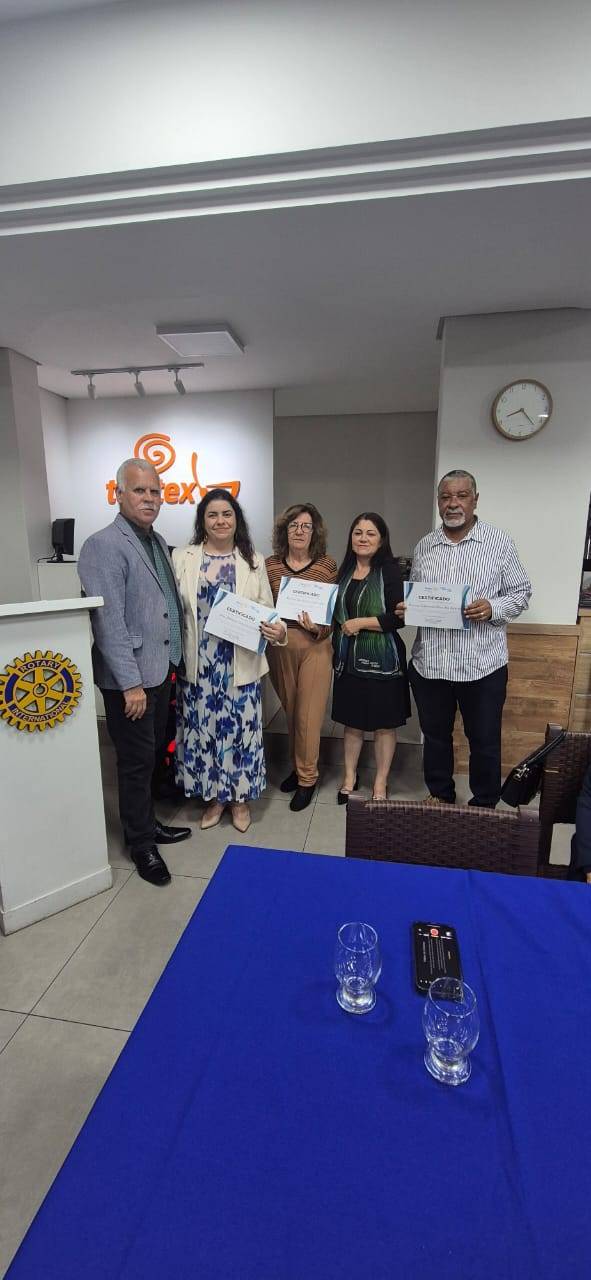 São muitos os profissionais que doam seu tempo e seu amor, às causas sociais do Rotary. Na noite de 04 de novembro, três dessas pessoas receberam certificados em gratidão por sua dedicação ao clube. São eles: 1) Dra. Bibiana Gioscia Leivas, que está acompanhando o processo de adaptação de uma moça à protese de punho e mão, doada pelo Rotary Club Capão da Canoa. 2) Marina dos Santos Conceição, que cortou os cabelos de crianças atendidas pela Casa Lar de Capão da Canoa, a quem o Rotary ajuda de diversas formas. 3) Marcelo Edmundo Dias, que ministrou palestra para estudantes da EMEF Prof Moacyr Araujo Pires, com quem o Rotary mantém convênio de apoio ao desenvolvimento social.