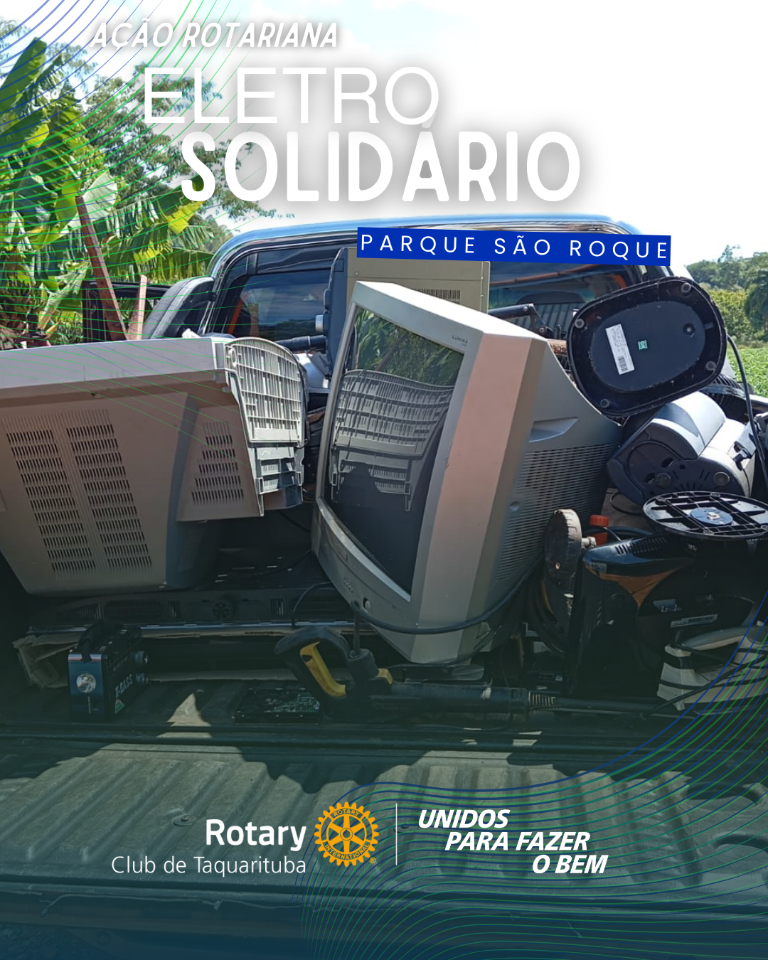 O Rotary Club de Taquarituba esteve nas ruas com 8 membros, realizando a coleta de lixo eletrônico, com 3 caminhonetes, e um carro de som para auxiliar a informação da ação, no Parque São Roque, dando destino correto a materiais que antes estavam parados nas casas da nossa comunidade. Foram aproximadamente 500 kilogramas de lixo coletado, destinado a um galpão para estoque.