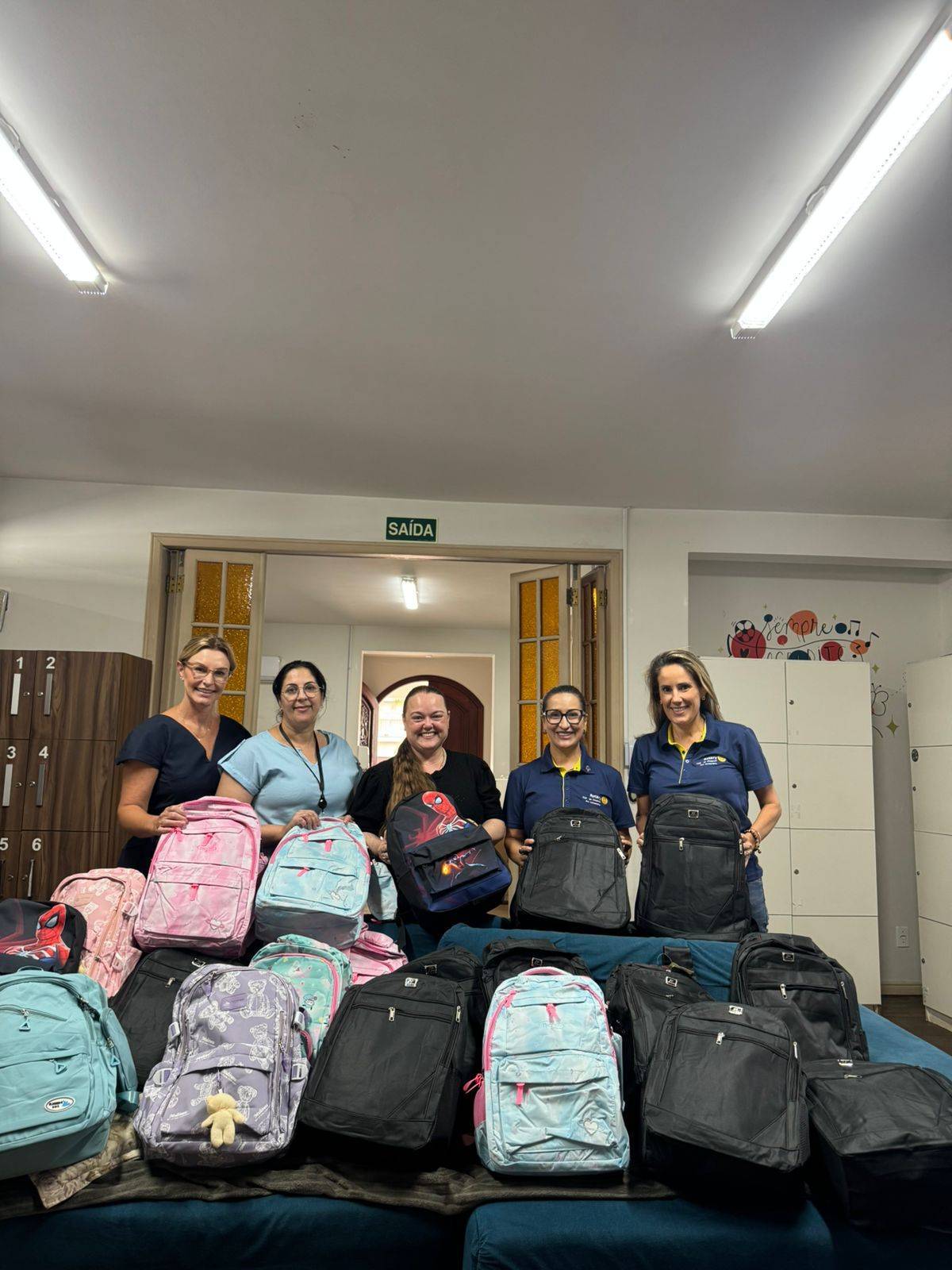 Um pedido especial mobilizou os companheiros neste início de ano: a doação de mochilas e estojos para as crianças do abrigo em Chapecó. O clube teve a contribuião de uma empresária que fez de seu anversário uma forma de arrecadação para a compra de mochilas novas. O início das aulas para estas crianças terão uma motivação ainda maior. A entrega da doação ao abrigo foi feita pelas companheiras do clube Lenir e Marlusa.