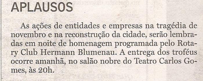 Publicado por: Giovani Vitória (Assessor de Imprensa do Rotary Clube Hermann Blumenau) em 03/03/09 às 22h30min.