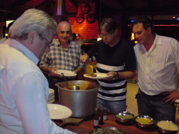 No dia 11 de março a Associação da Taschibra recebeu os companheiros do Hermann no encontro mensal de cozinheiros. As panelas e a churrasqueira foram comandadas pelos gourmets Hamilton Fogaça Giovani Vitória Osmar Labes Roberto Ehlke e Afonso Schreiber. No cardápio arroz carreteiro e ovelha na brasa. O companheiro Solveig Marchi licenciado do clube matou saudades do Clube revendo os amigos.
