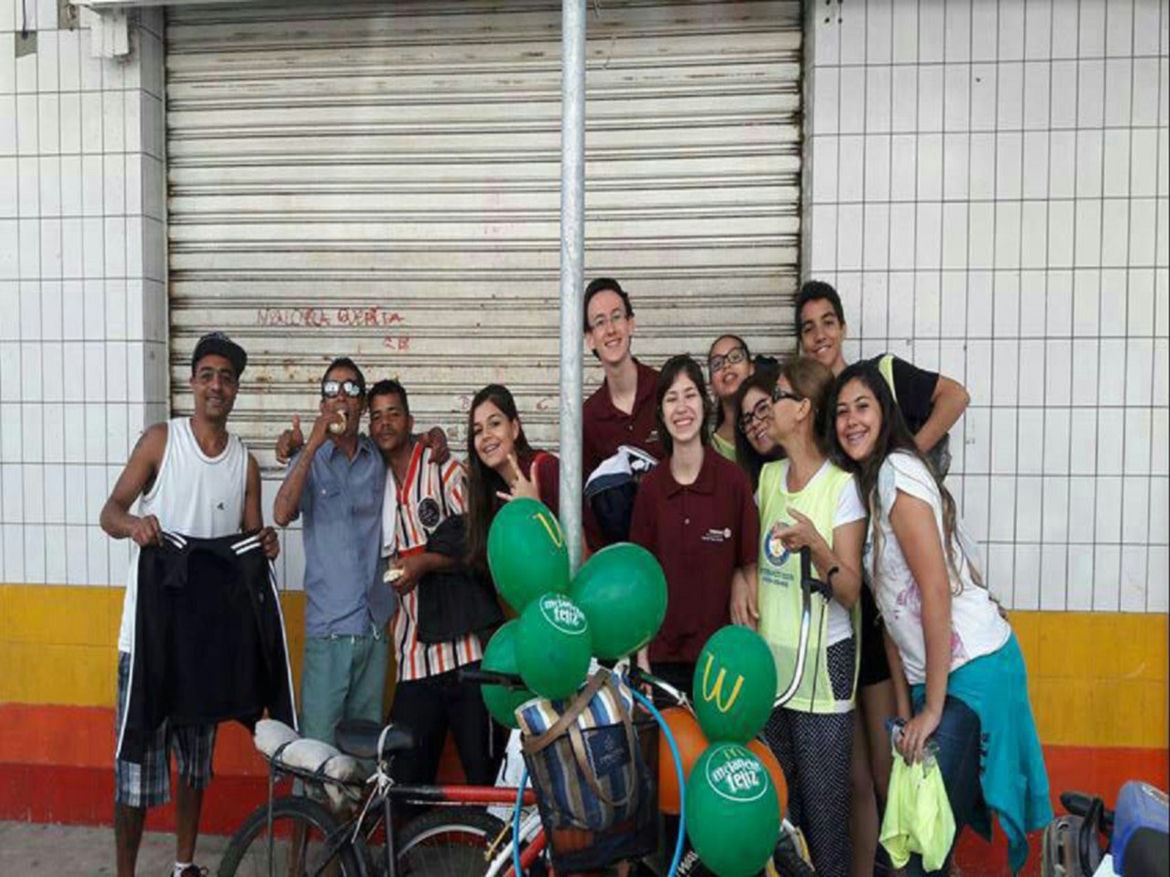 Nos reunirmos e fomos em busca de quem estava precisando de roupas para se aquecer, já que de noite as ruas são bem frias, junto com as roupas também oferecemos alimento. Esse foi mais um de nossos projetos, foi totalmente gratificante ver a alegria dos moradores de rua!