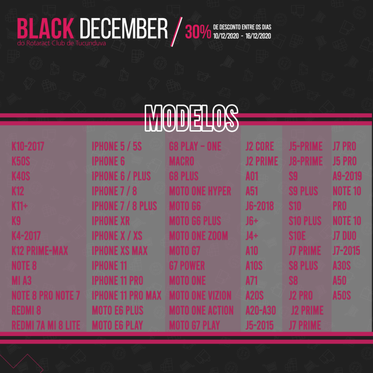 No Black December do Rotaract Club de Tucunduva, cada capinha sai por apenas R$ 35,00 e o pagamento pode ser feito por depósito ou TED.