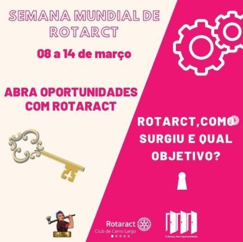 Na semana do dia 8 ao dia 14 de março, os Rotaracts Clubs de todos os 180 países, comemoram e divulgam sua história e suas realizações como Rotaract pela comunidade onde estão inseridos. Essa semana denomina-se Semana Mundial de Rotaract.