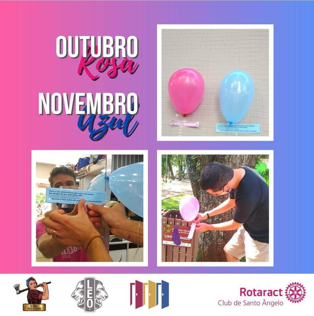 E, pensando nisso, nós do Rotaract Club de Santo Ângelo realizamos um projeto unindo Outubro Rosa e Novembro Azul. Em parceria com o Leo clube, no sábado, 07/11/2020, distribuímos balões com mensagens de conscientização por vários pontos de nossa cidade.