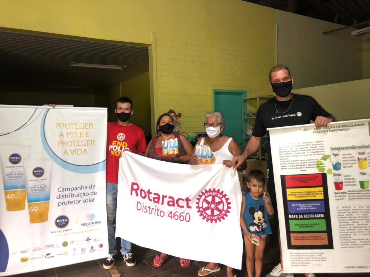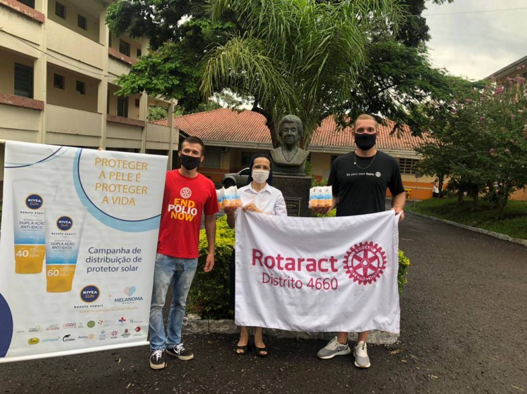 No dia 29 de janeiro, o Representante Distrital de Rotaract do Distrito 4660, Maiquel Pies, esteve em Santa Maria para realizar a entrega de protetores solares nas entidades Vila Itagiba e ARSELE. O projeto da NIVEA em parceria com a Melanoma Brasil distribuirá 50 mil protetores para instituições nos Estados com maior incidência de câncer de pele.