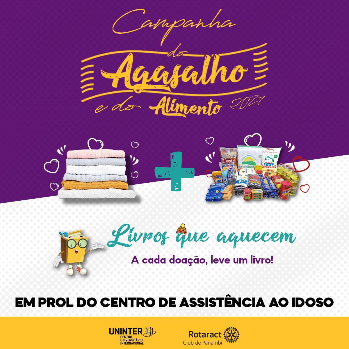 O Rotaract Club de Panambi, em parceria com a Uninter, está realizando o projeto “Livros que aquecem”. Uma arrecadação de alimentos não perecíveis, mantas e roupas, em prol do Centro de Assistência ao Idoso. A cada doação feita você receberá em troca um livro de presente. Além de espalhar o amor e a solidariedade, estarás adquirindo conhecimentos e novos saberes.