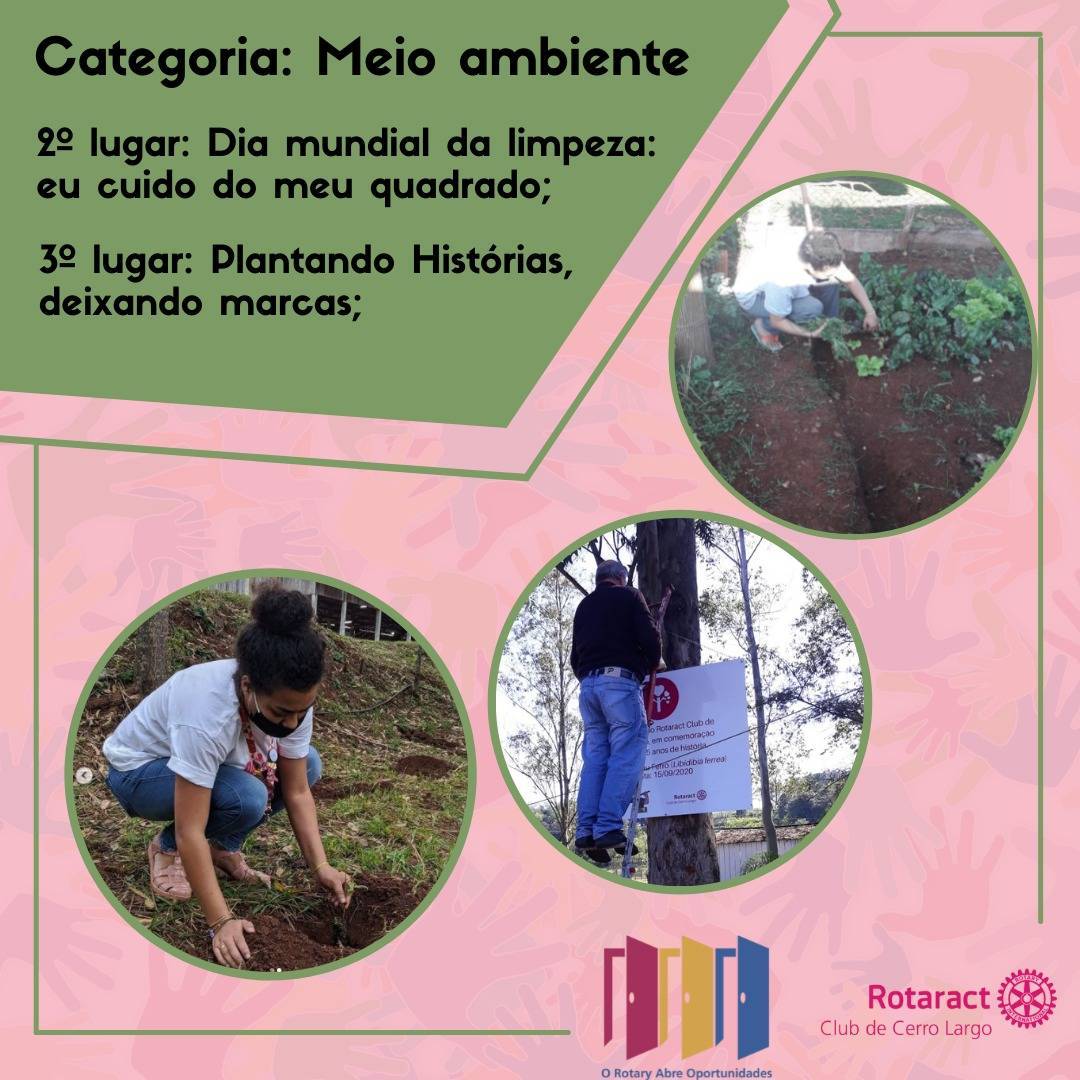 Os projetos “Dia mundial da limpeza: eu cuido do meu quadrado”, sobre correta destinação de resíduos, e “Plantando histórias, deixando marcas”, sobre plantio de árvores nativas, ambos da categoria Meio Ambiente, foram premiados com o segundo e terceiro lugares respectivamente.