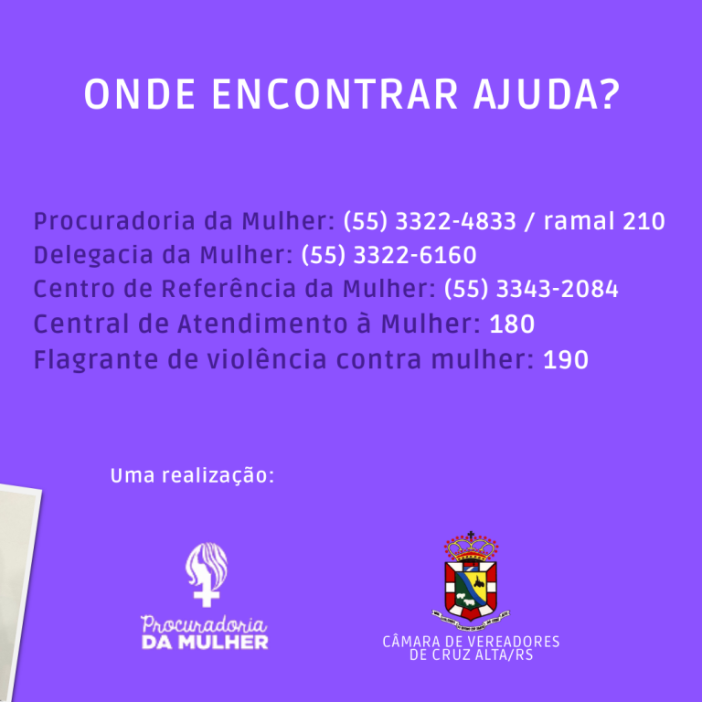No nosso município, a campanha é coordenada Procuradoria da Mulher de Cruz Alta.