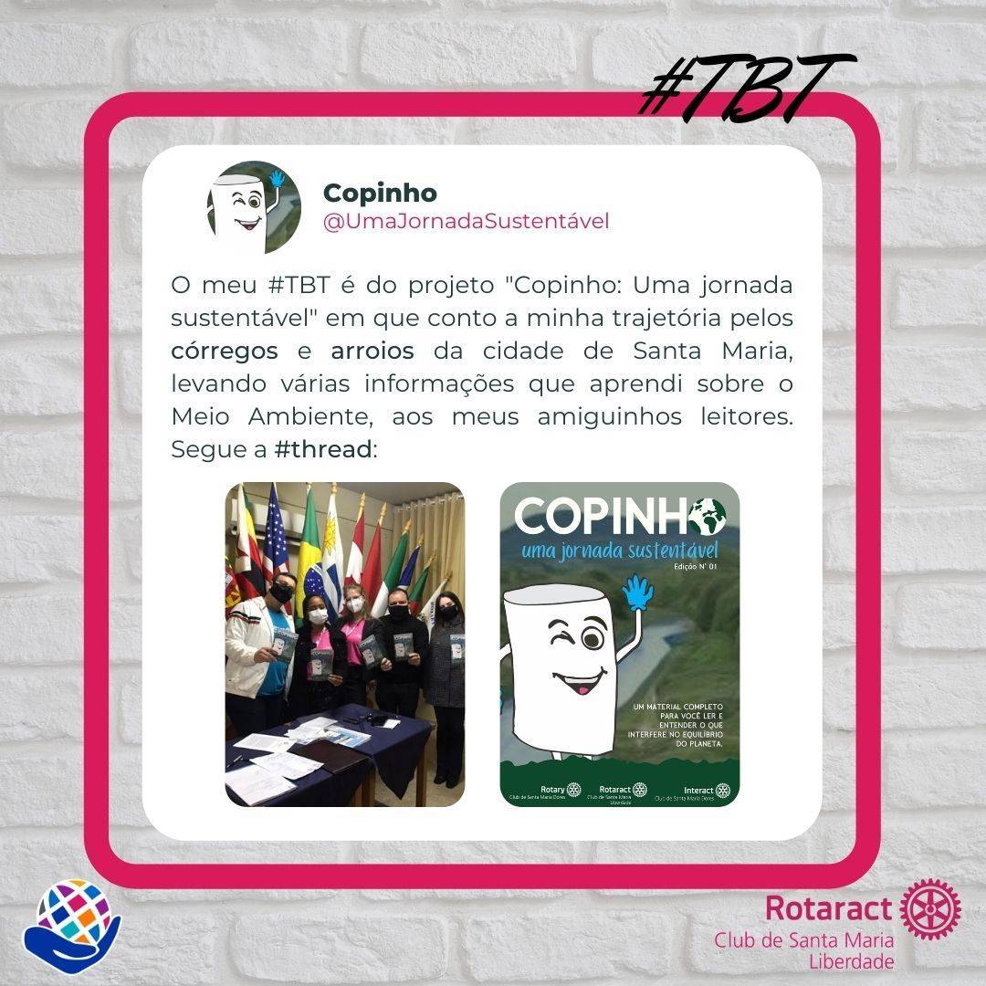 Em continuidade a Semana Distrital do Meio Ambiente, trazemos hoje um #TBT mais do que especial para o nosso clube, do projeto "Copinho: Uma Jornada Sustentável", realizado em parceria com o Rotary Club de Santa Maria Dores e Interact Club de Santa Maria Dores, finalizado no mês de agosto da presente gestão.💖💖