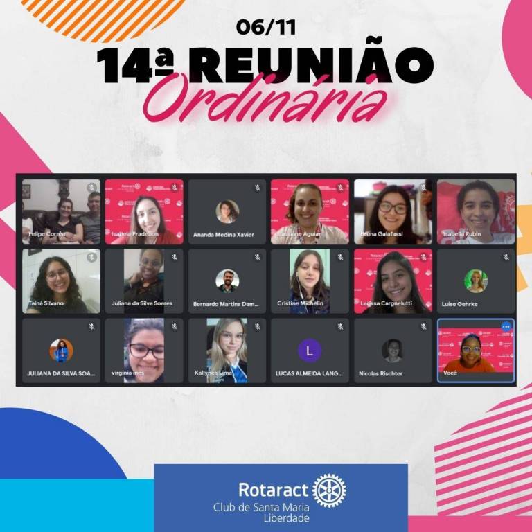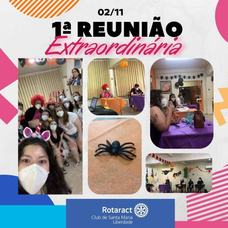 👉Em homenagem a data comemorativa do Halloween, iniciamos as reuniões do mês com decoração e fantasias temáticas mais que especiais para a data! Além da reunião realizada 100% online, tivemos a ilustre presença e palestra ministrada pelo companheiro Fernando Savian, associado ao Rotary Club de Santa Maria Locomotiva, referência em Oratória e Desenvolvimento Pessoal no Distrito 4660, com o assunto Criação de Discursos Memoráveis, inspirando todos os presentes. Findando o mês de novembro, foi realizada uma Reunião após o Concurso Interno de Oratória do clube, que foi um sucesso! 👏🎤