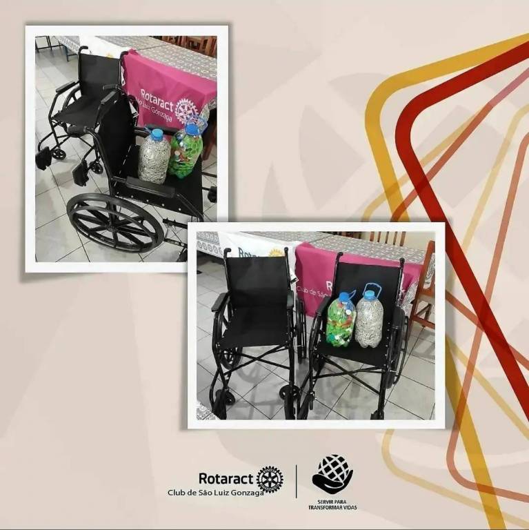 Nesta semana, o Rotaract Club de São Luiz Gonzaga, juntamente com o nosso Rotary padrinho, recebeu duas cadeiras de rodas compradas na Fisioclin, pelos dois clubes.