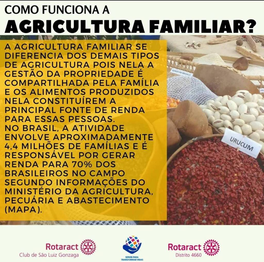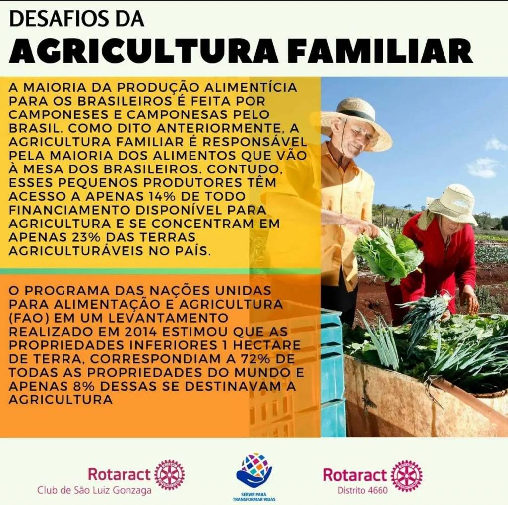 No segundo dia da Semana Ambiental Distrital, do Distrito 4660, traremos informações da agricultura familiar, bem como a sua influência no desenvolvimento das comunidades de todo o país.