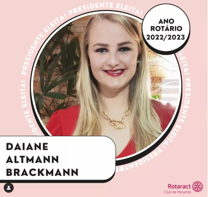 Assim, parabenizamos a companheira Daiane Altmann Brackmann, presidente eleita para o próximo Ano Rotário!