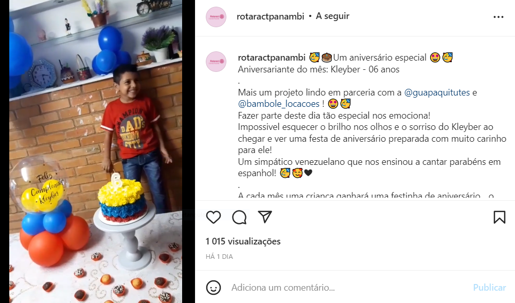 A cada mês uma criança ganhará uma festinha de aniversário... o bolo, os doces e os salgados doados pela @guapaquitutes .. Os balões e decoração doados pela @bambole_locacoes ! Nosso agradecimento a Mari, Taci e Rê por serem parceiras deste projeto e tornarem o aniversário de uma criança especial! 🤩🎂🥳