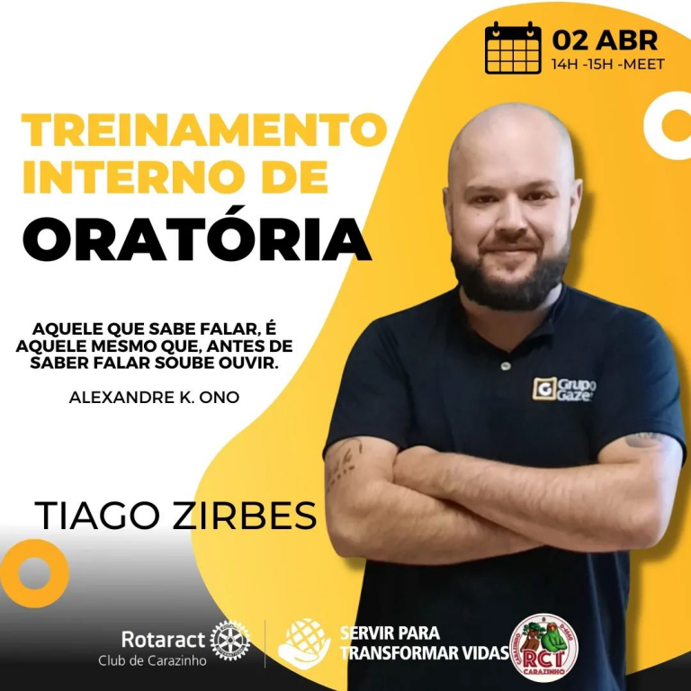 O terceiro módulo foi um treinamento interno de oratória, ministrado por Tiago Zirbes, no dia 02 de abril de 2022.