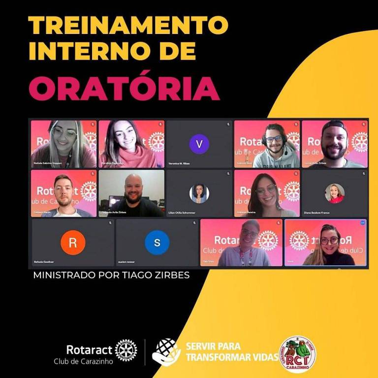 No último sábado, 02/04/2022, o Rotaract Club de Carazinho realizou o seu 2° Treinamento Interno de Oratória, ministrado por Tiago Zirbes @tiagozirbes , comunicador de rádio há 22 anos, locutor publicitário e ex-professor do Curso de Radialismo do Senac – RS.