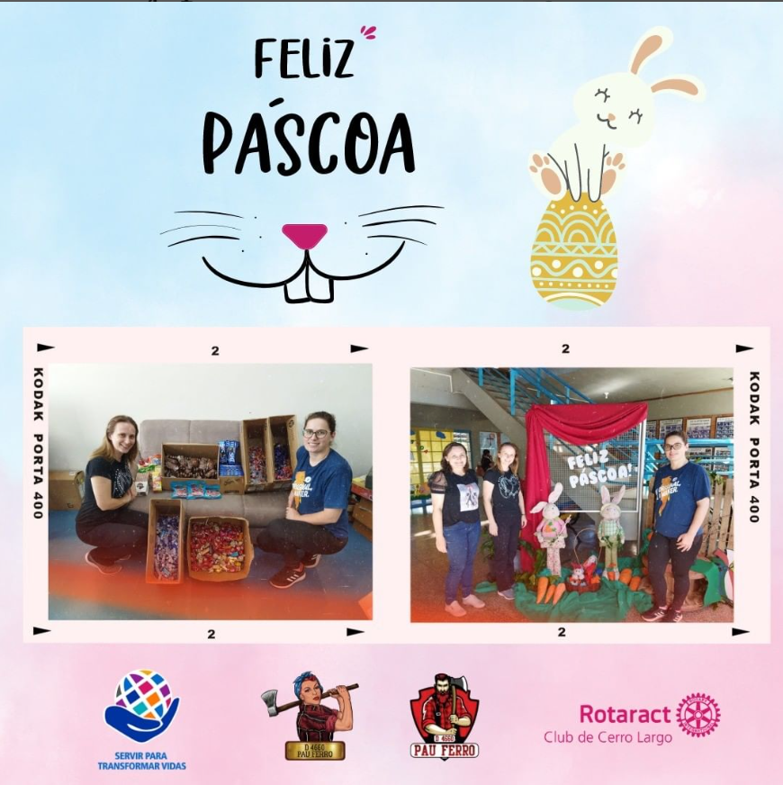 Páscoa é tempo de renovação, é tempo de reflexão em torno de nossa vida. Nas semanas anteriores a páscoa, os rotaractianos e rotaractianas organizaram uma coleta de doces, com destinação aos alunos da Escola Otto Flach. Queremos aqui agradecer a doação de cada um, com toda a certeza, a Páscoa dessas crianças se fez mais feliz graças a ajuda de cada cerrolarguense que mais uma vez abraçou a causa.