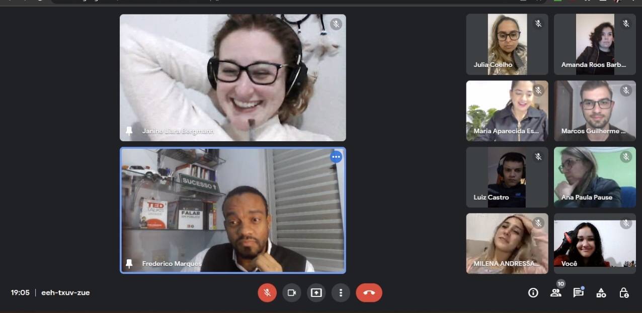 Palestra de Oratória realizada com Fred Marques (Advogado Corporativo, Líder de Diversidade e Professor/Palestrante de Oratória em todo Brasil. Fred é atualmente associado ao Rotary Club Belo Horizonte Leste tendo sido Campeão do 1º Concurso Mineiro de Oratória em 2016 pelo Rotaract), e Janine Liara (Licenciada em Química, Bancária, Bombeira Voluntária e Associada ao Rotaract Club de Cerro Largo. Campeã do X Concurso Distrital de Oratória do Distrito 4660). A palestra foi realizada no dia 27/06/2022, tendo início às 19 horas, e finalizada às 20h30min. A palestra foi gravada para que os companheiros possam assisti-la posteriormente.