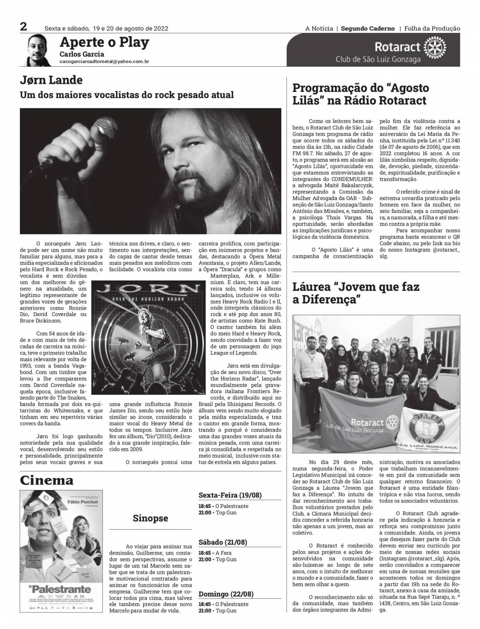 7ª Coluna do Ano Rotário 2022/2023 no Jornal A Notícia
