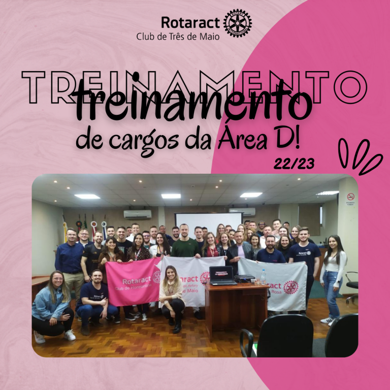 No sábado do dia 16 de julho de 2022, a partir das 14 horas, na Câmara Municipal de Vereadores de Três de Maio, ocorreu o evento “Treinamento de Cargos da Área D”, promovido pelo Rotaract Club de Três de Maio, que reuniu os rotaractianos das cidades de Três de Maio, Tucunduva, Horizontina e Santa Rosa. Os mesmos receberam um treinamento de todos os cargos da gestão que se inicia, treinamento este que, contribuirá muito para o desenvolvimento de cada companheiro, bem como, para o desenvolvimento dos clubes de serviços.