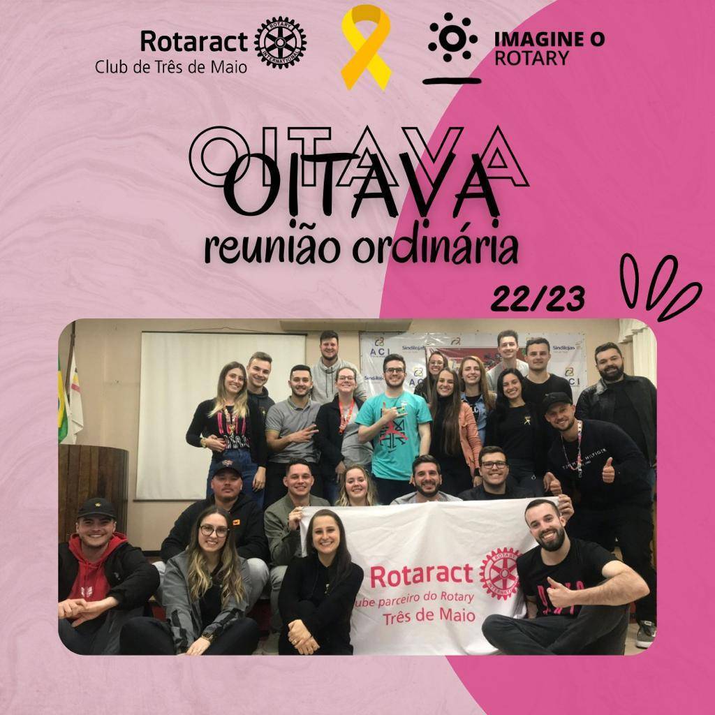 Dia 11 de setembro ocorreu a 8ª reunião ordinária do Ano Rotário 2022/23. Teve apresentação do projeto “Essa Minha Vida”, do companheiro Leonardo, entrega das novas camisetas, convite para eventos regionais, organização para o evento Rotaractíadas, avisos gerais de projetos com direito a lanchinho, entrega dos cartões das vendas do “PizzaRact” e muita torta na cara sobre o “Quiz do Rotaract e Família Rotária”, alusivo a II Edição do projeto interno “Não basta ser Rotaract, tem que participar”.