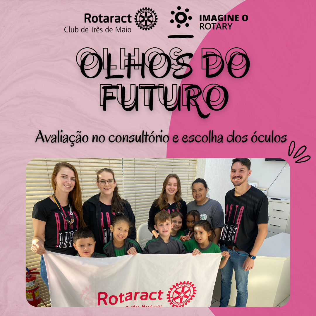 Dia 26 de maio, o Rotaract Club de Três de Maio realizou a quinta etapa do projeto “Olhos do Futuro”, com 11 atendimentos de alunos das séries iniciais da Escola Municipal Cívico-Militar Caminhos Inovadores, no consultório do Profissional Optometrista e Rotariano, Alexandre Classmann, com a realização de novos exames específicos.
