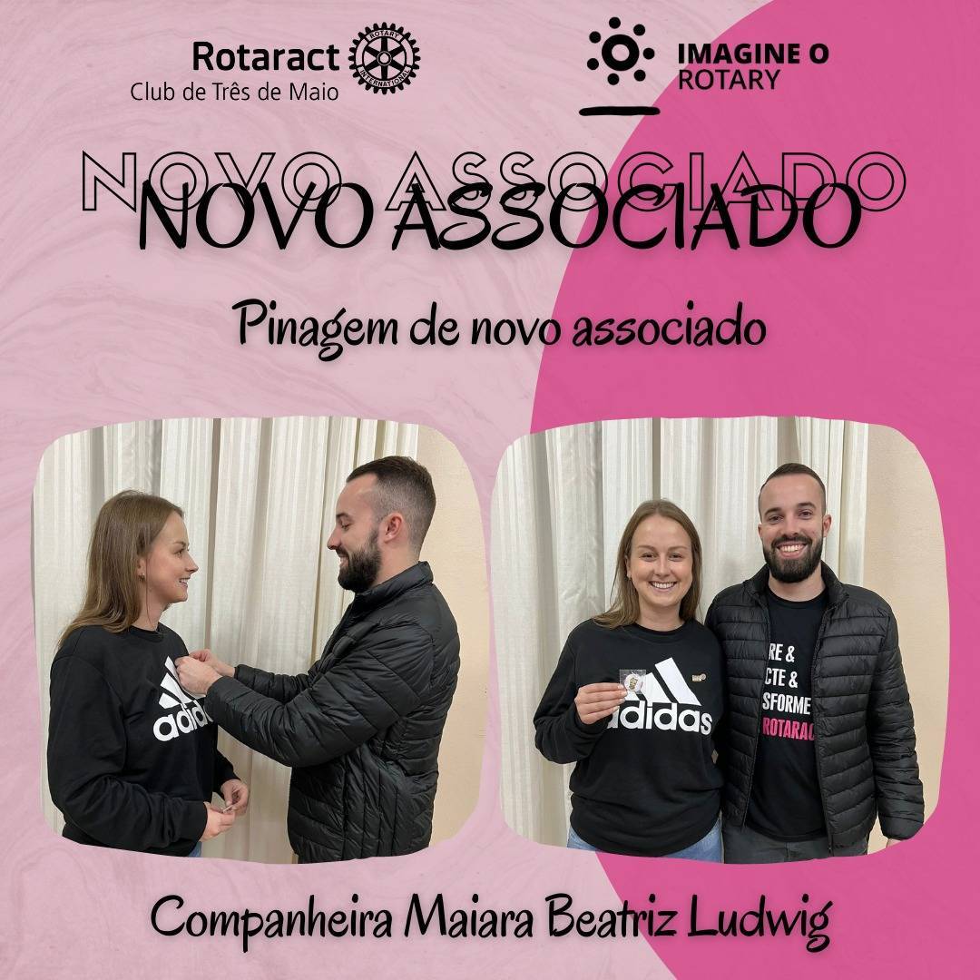 Na 24ª reunião ordinária do Ano Rotário 2022/23, no dia 28 de maio, o companheiro Luciano H. S. Rossi, pinou a sócia Maiara B. Ludwig.