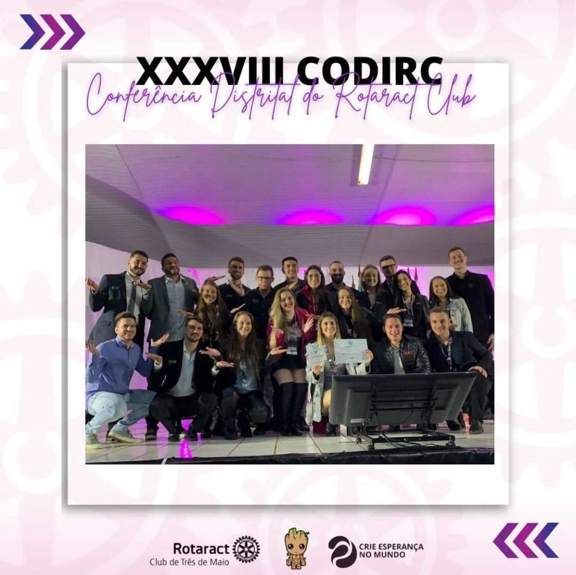 Nos dias 08 e 09 de julho, os companheiros do Rotaract Club de Três de Maio participaram da XXXVIII Conferência Distrital do Rotaract Club (CODIRC) do Distrito 4660, na cidade de Frederico Westphalen. Uma oportunidade de rever amigos, trocar experiências e fortalecer o companheirismo com todo o Distrito!