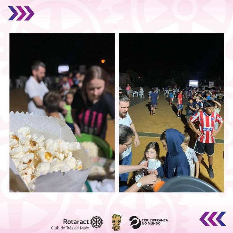 O Rotaract Três de Maio marcou presença no I Cinema de Bairro, realizado na quadra de esportes do Bairro Promorar, no dia 17 de agosto, com a exibição do filme Monstros S.A. 🎥👾