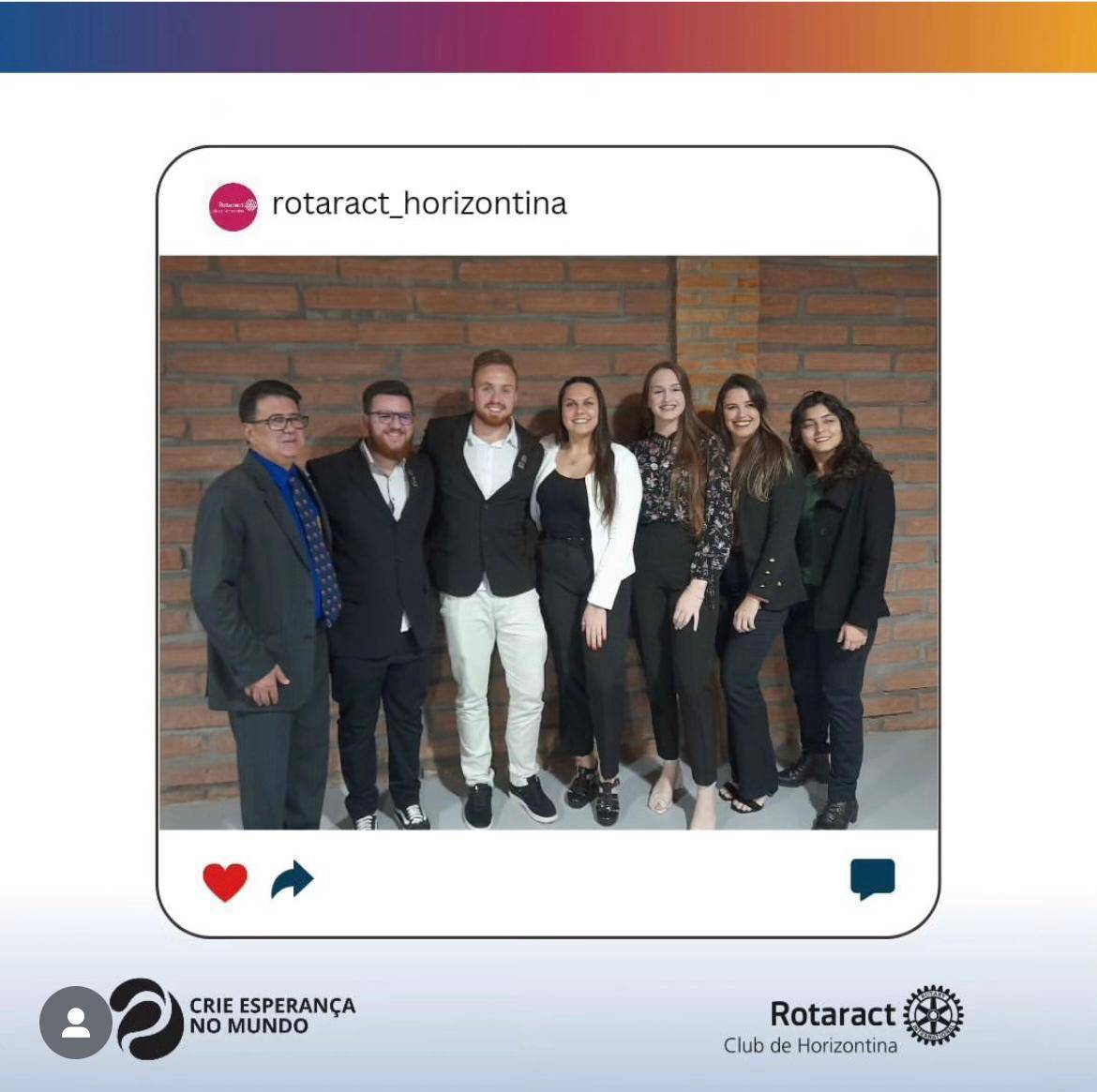O Rotaract Club de Horizontina, deseja sucesso ao novo conselho diretor do Rotary Horizontina, e se compromete a juntos desenvolver uma gestão com muita união entre a família rotária, para que assim possamos criar mais esperança no mundo!