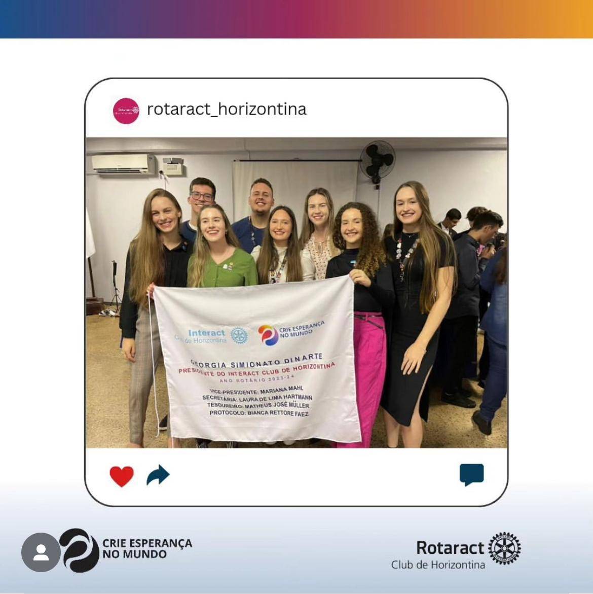 O Rotaract Club de Horizontina, deseja sucesso ao novo conselho diretor do Interact Horizontina, e se compromete a juntos desenvolver uma gestão com muita união entre a família rotária, para que assim posamos criar mais esperança no mundo!