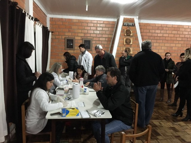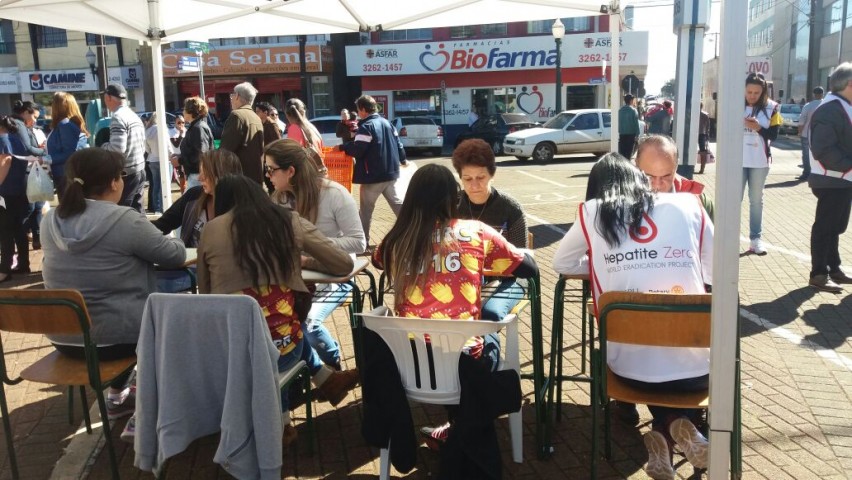 Durante os períodos da manhã e tarde dos dias 12 e 13 realizaram-se os testes para Hepatite C na Praça Municipal de Palmas-PR, contando com a presença dos sócios do Rotary e Rotaract no cadastro da população, acadêmicos de enfermagem do Instituto Federal do Paraná – Campus Palmas para a coleta do exame e dos profissionais da Saúde Municipal para a liberação de laudos dos resultados e orientação.