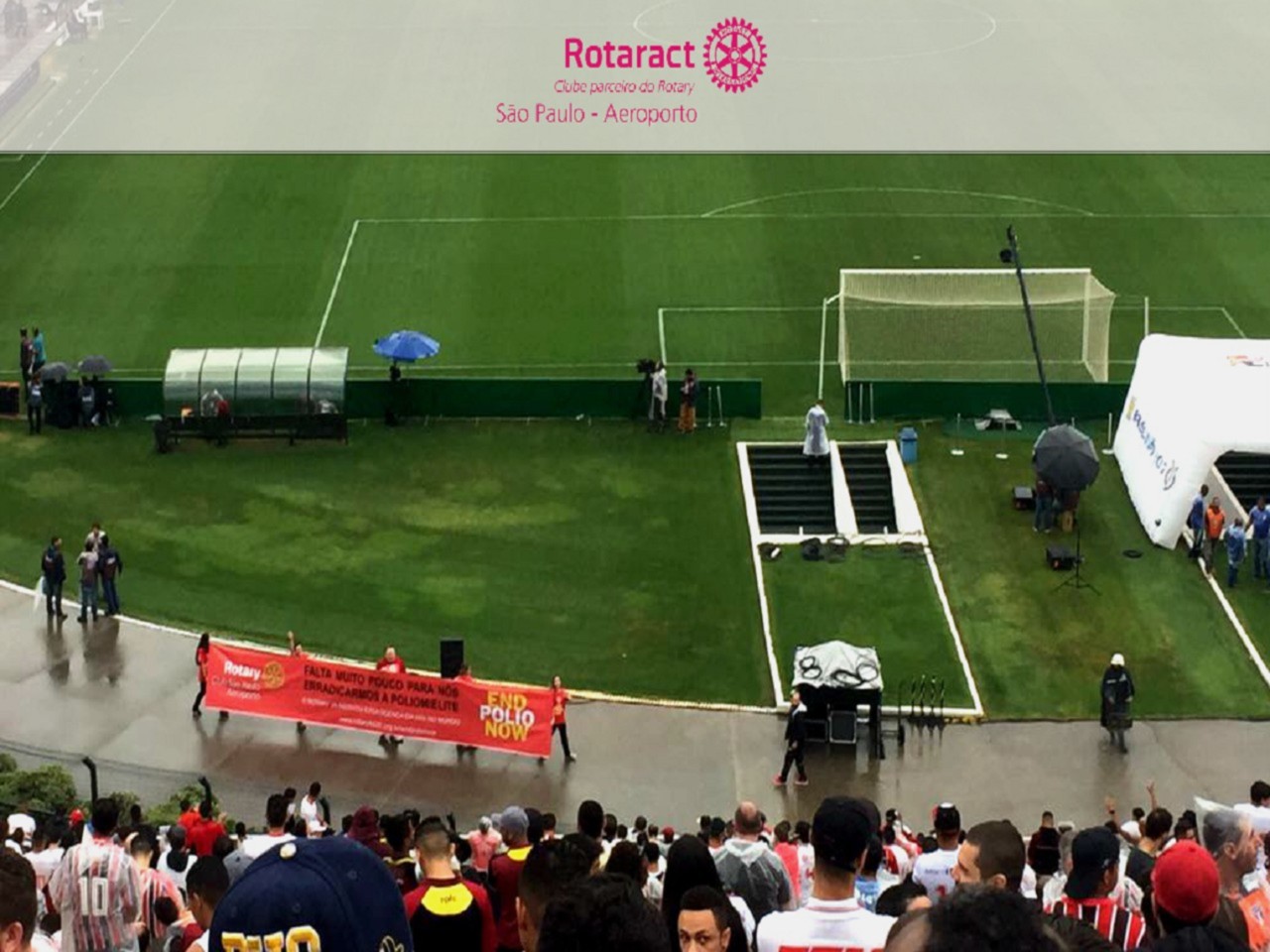 Para marcar o Dia Mundial de Combate à Pólio (24/10), o Rotaract Club de São Paulo ? Aeroporto, junto ao Rotary Club de São Paulo Aeroporto, a Casa da Amizade RCSP Aeroporto e o Interact Aeroporto entraram em campo representados pelas presidentes Giulia Priore, Claudia Priore, Marisa Dascenzi e Fernanda Tie, além de Leonardo Weissmann, presidente da Comissão da Fundação Rotária, carregando a faixa do #EndPolioNow.
