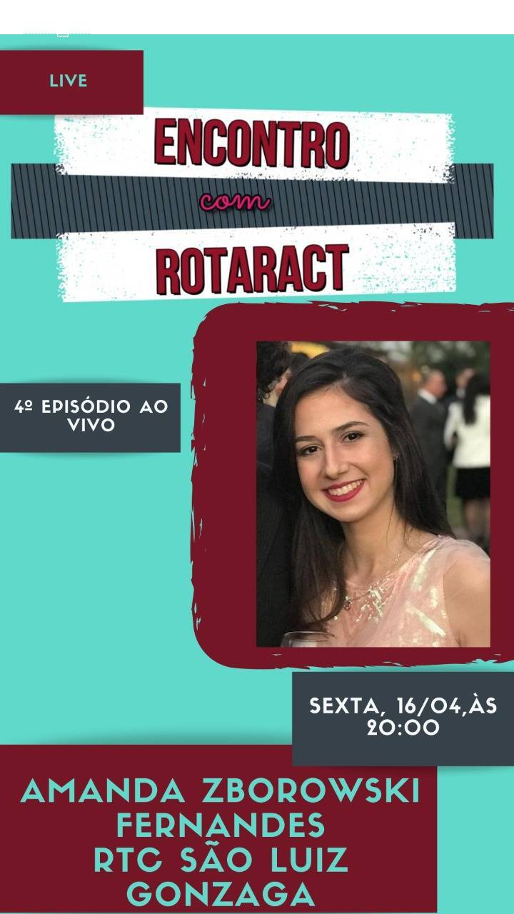 Na sexta-feira, dia 17 de abril, a quarentena rotaractiana foi mais uma vez movimentada por um "Encontro com Rotaract" no formato de live. Na oportunidade, a Tesoureira Rotaract Club de Cerro Largo, Janine, entrevistou a companheira Amanda, do Rotaract Club de São Luiz Gonzaga.