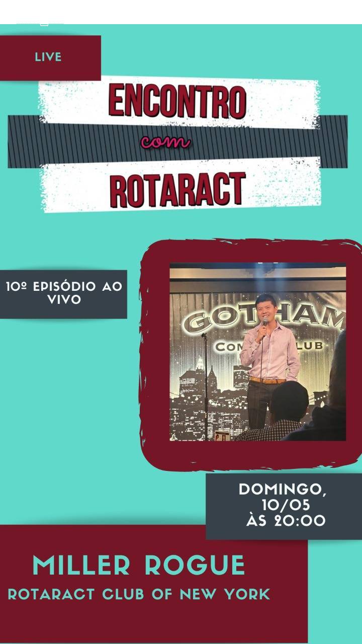 O 10º Encontro com Rotaract no formato live pelo Instagram foi internacional. O companheiro Matheus Hartmann, representando o Rotaract Club de Cerro Largo, entrevistou o rotaractiano Miller Rouge, do Rotaract Club of New York. A conversa, que na maior parte do tempo foi em inglês, ia sendo traduzida por Matheus, possibilitando que mesmo quem não domina a língua estrangeira aprendesse com a fala do companheiro norte-americano.
