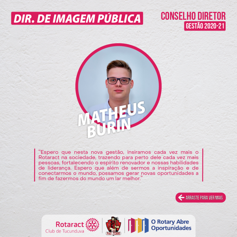 Tem também como função ser o porta-voz do Rotaract Club Tucunduva perante o Distrito 4660.