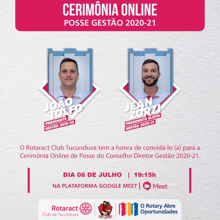 O Rotaract Club de Tucunduva tem o prazer de realizar este convite para a Posse Online do Conselho Diretor 2020 - 2021.