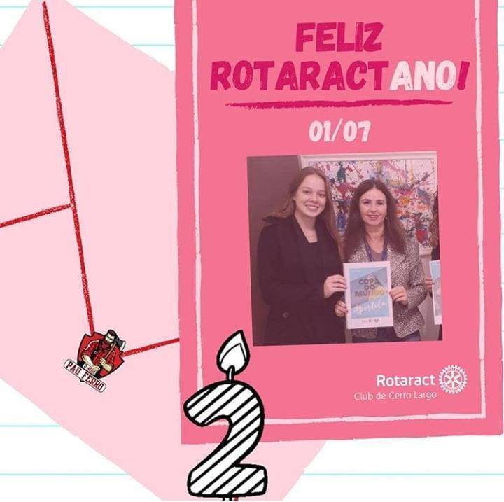 O RotaractAno, projeto que vem sendo realizado com o Diretoria de Desenvolvimento do Quadro Associativo (DQA) e com a equipe de Imagem Pública (IP) do Rotaract Club de Cerro Largo, celebrou nesta semana, 27 de julho de 2020, o aniverssário de clube de dois (2) de seus sócios Carolina Zimmermann e Steve Ewald celebrando seus três (3) anos de clube