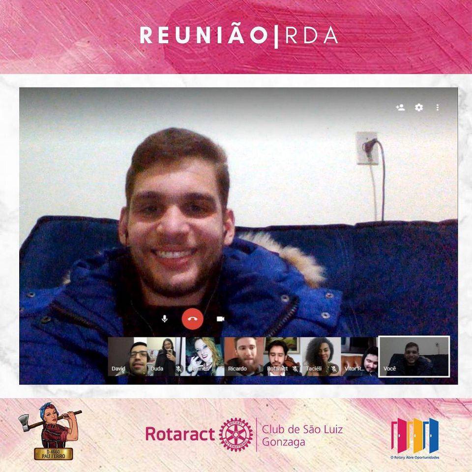 Também participaram do encontro os demais presidentes e vices dos clubes da Área E - Cerro Largo (presidente Tacieli e vice Janine) Santo Ângelo (presidente David e vice Ricardo) e São Borja (presidente Maria Eduarda). No encontro virtual, Mathias, que também é associado ao nosso clube, orientou sobre a realidade de nossa área, onde temos clubes com grande potencial para fazer um excelente trabalho em 2020/21.