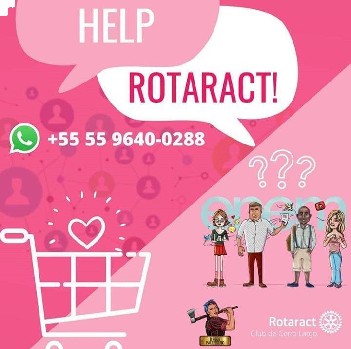 Vocês já estão sabendo que o Rotaract Club de Cerro Largo possui uma rede de voluntários que realiza compras aos grupos de risco da Covid-19. Agora estamos lançaando o "Help Rotaract", que consiste em tirar dúvidas para o ENEM 2020 que ocorrerá em janeiro de 2021.