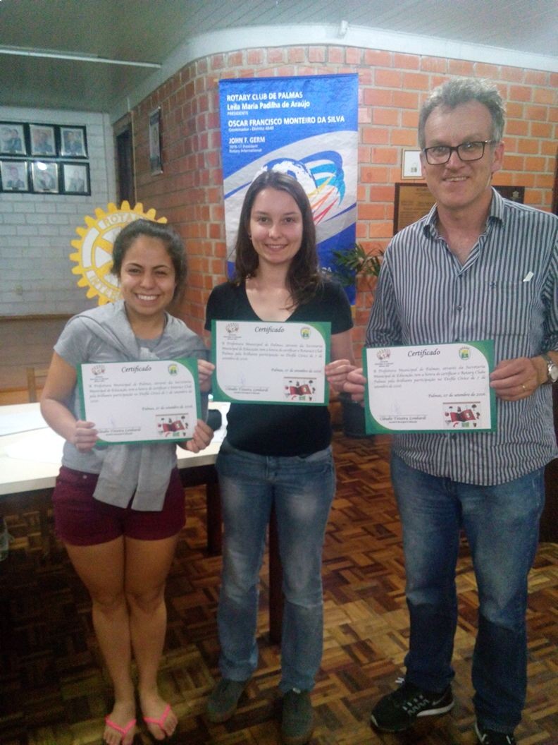 Durante a reunião do Rotary Club de Palmas do dia 03 de outubro na sede de seu clube ocorreu a entrega de um certificado de participação concedido pela Prefeitura Municipal de Palmas através da Secretaria Municipal de Educação ao Interact Club, Rotaract Club e ao Rotary Club de Palmas pela participação dos clubes do Desfile Cívico de 7 de setembro do município de Palmas PR.